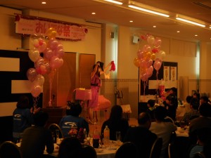 約4時間のパーティーで姫のステージの頃には過半数の方々が大胆に酔っぱらっていらっしゃいまして、お手伝いをお願いしたお客様が次々とスベル寸前のギリギリのボケを競うように見せてくださいました。