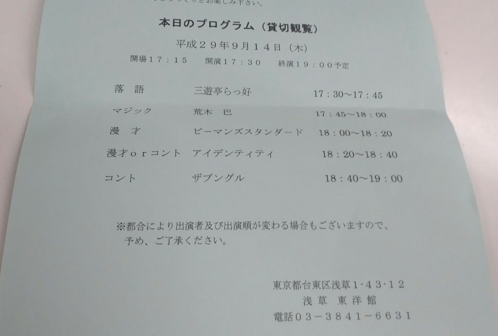 いつもいつも大変お世話になっている浅草東洋館様にて企業様の貸切寄席でマジックをさせていただきました。