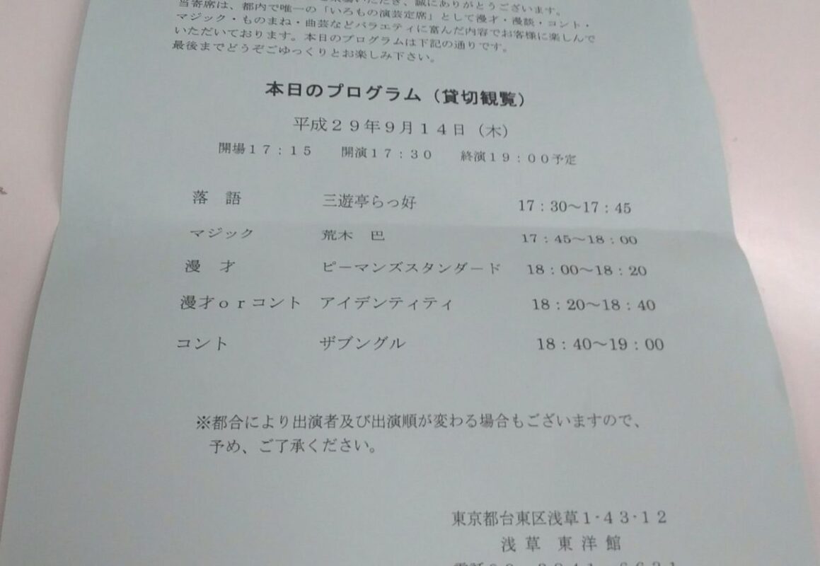 いつもいつも大変お世話になっている浅草東洋館様にて企業様の貸切寄席でマジックをさせていただきました。